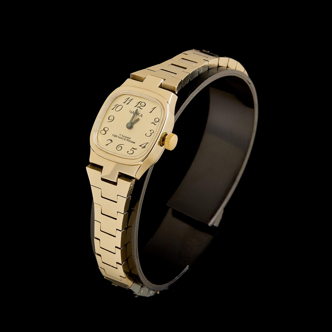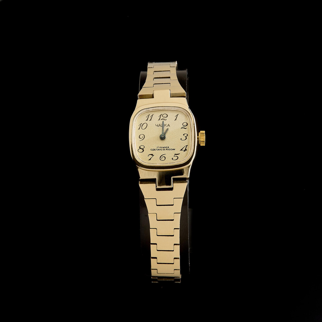 The elegant and beautiful “Chaika” wristwatch is equipped with a 17-jewel movement.