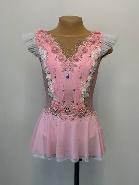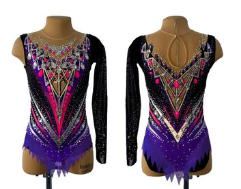 The Rhythmic Gymnastics Leotard ”Bubblegum” RGL_202304 combines a bright bi-elastic supplex fabric – polyamide with the addition of elastane and a beige mesh or fabric to simulate a naked body. Production of materials in Italy, and England. The fabric stretches well and does not hinder movement. The colors are bright and saturated. To give the effect of volume, 2D and 3D applications were used, as well as additional hand-painted details. As our products are not serial and this model is handmade, when sewing there may be a slight difference from the sample in the photo. We can make this leotard according to your individual measurements. If you want to order an exact copy, make the same amount of decor when filling out the order. You can also order any amount of decor. The number of rhinestones and their measurements can be added below. The cost of the model includes fabric, tailoring, original painting on the fabric, applique, and hair elastic. To order, select “standard size” below, or enter your own in “individual measurements”.