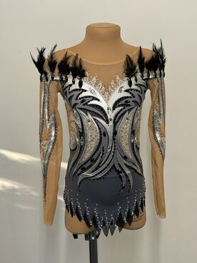Купальник для художественной гимнастики «Серо-зеленые ленты» RGL_202433 330.00 $ В наличии! Платье для выступлений, купальник для художественной гимнастики и акробатики, модель «Серо-зеленые ленты»