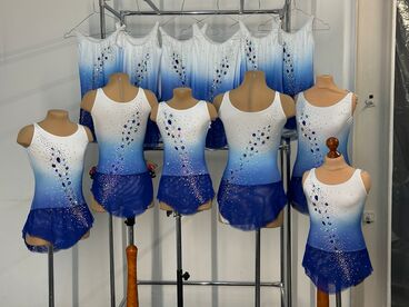 children's dresses for gymnastics competitions, multi-colored, decorated with rhinestones