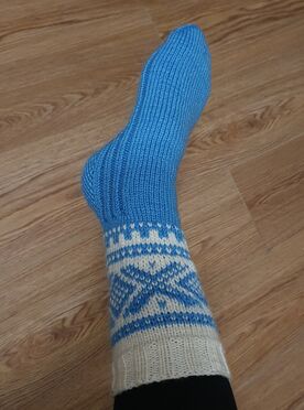 Socks made from Alize Artisan sock yarn, thin yet dense, jacquard without floats, knitted on a knitting machine. Durable yarn, machine washable. Size 39-40. Composition: 75% wool, 25% polyamide.