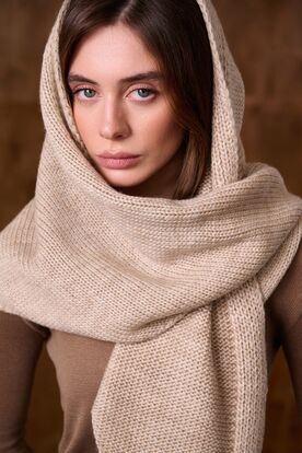 https://drive.google.com/file/... Women's scarf made of soft semi-woolen yarn. Elastic double-sided knitting. Neat edges of the product. Comfortable width and volume. Length 2.1 m. Width 26 cm. composition: 40% - WOOL 25% - VISCOSE 20% - ACRYLIC-SOFT 15% - POLYAMIDE