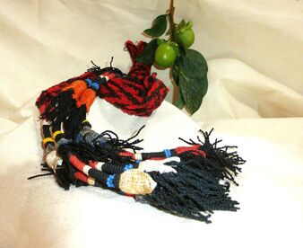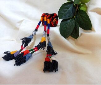 Offered here is an Uzbek-Lakai pendants for a yurt. The items came from the Southern Uzbekistan. Circa: 1950's. The pattern of the emroidery is composed of the symbolical mysterious Lakai motifs. This piece is decorated with hand-knitted silk fringe and bright twisted tassels. I do not know anyone who can make such tassels now! The pendant with outstanding Lakai design is a wonderful demonstration of superior craftsmanship of Uzbek-Lakai embroideries. There is so much detail in the design that adds to the sophistication of the piece. The colors are very rich and extremely and carefully selected. Size: 5.4-30 in Organic silk 100% on organic wool 100%. Excellent condition. Thank you for your time and interest.