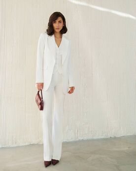 Descriptions:  -Fabric: premium crepe diagonal with dense lining -Single Breast Jacket  -Cut- Out Shoulders -Wide Leg Pants with Pocket  -Colors: white, black *write for us and we will send more photo . Shipping: We offer worldwide shipping, and it’s already included in the price — no additional costs for you. Additionally, we can upgrade your order to express delivery upon request for faster shipping.