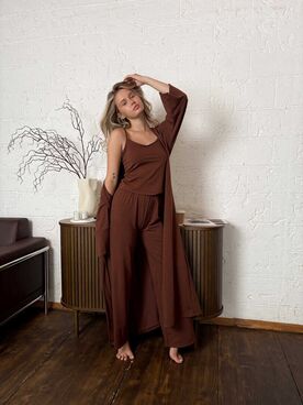 Explore our new pajamas Aurora-lightweight, natural soft and cozy pajama set- it is combines comfort and timeless style, perfect for lounging and cozy night's sleep☁️ The minimalist design looks cute and simple. More Details: |This pajamas made from 100% cotton |Relaxed Fit, that ensures all-night sleep |Elastic High Waist Pants without pockets |Cotton Tank Top | Long Kimono Robe with Belt, length 130 cm or 51 inch |Pants Length 102 cm or 40 inch |Fabric quality foam, does not cough and does not shrink after washing.