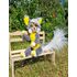- Material: plastic for head (under the fur and flock), faux fur for body, glass eyes. Wire frame inside the toy.