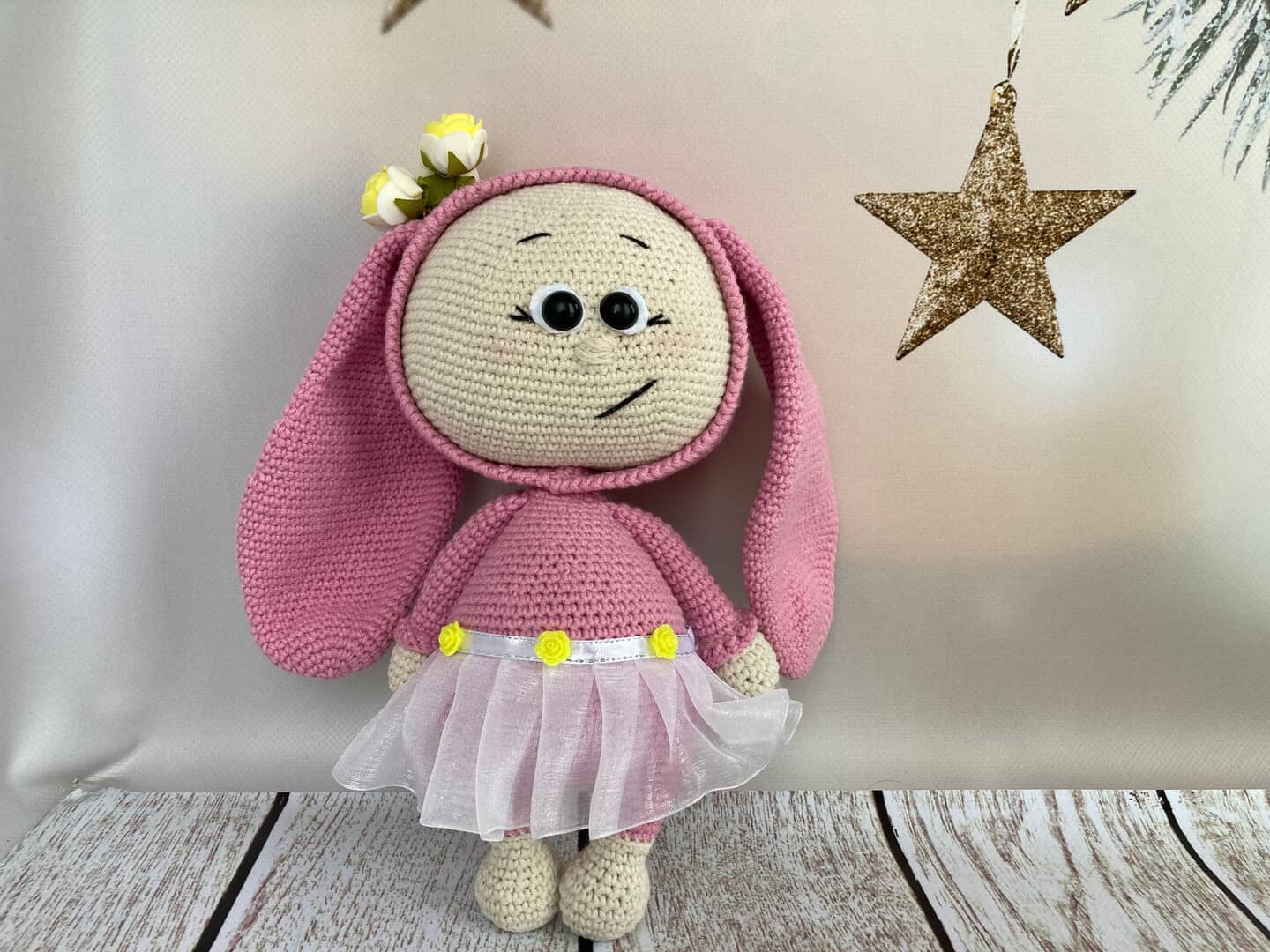 Handmade knitted toy Tied doll bunny Doll with clothes Bonnie doll in costume