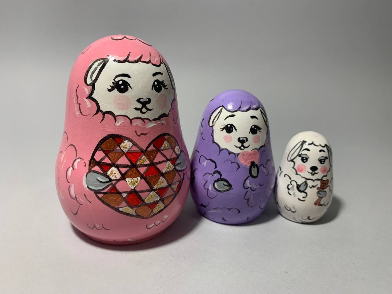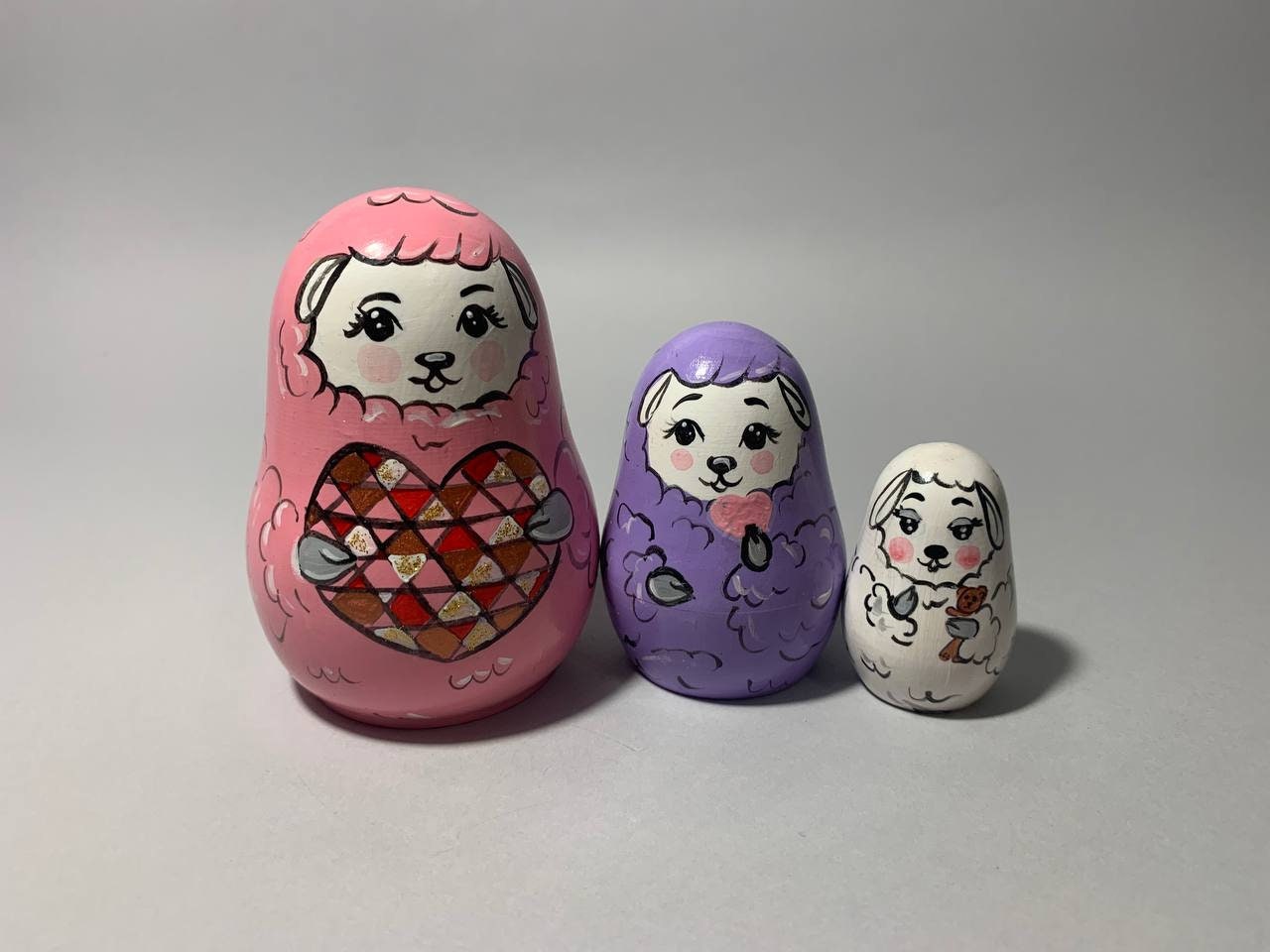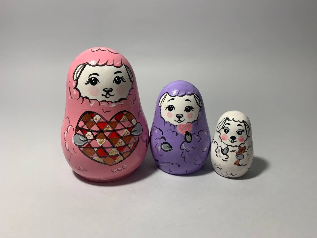Handmade Nesting Doll, 3th Nesting Doll, Hand Painted Nesting Doll, Nesting Doll Lamb, Nesting Doll, Handmade Wooden Doll, Figurine Lamb
