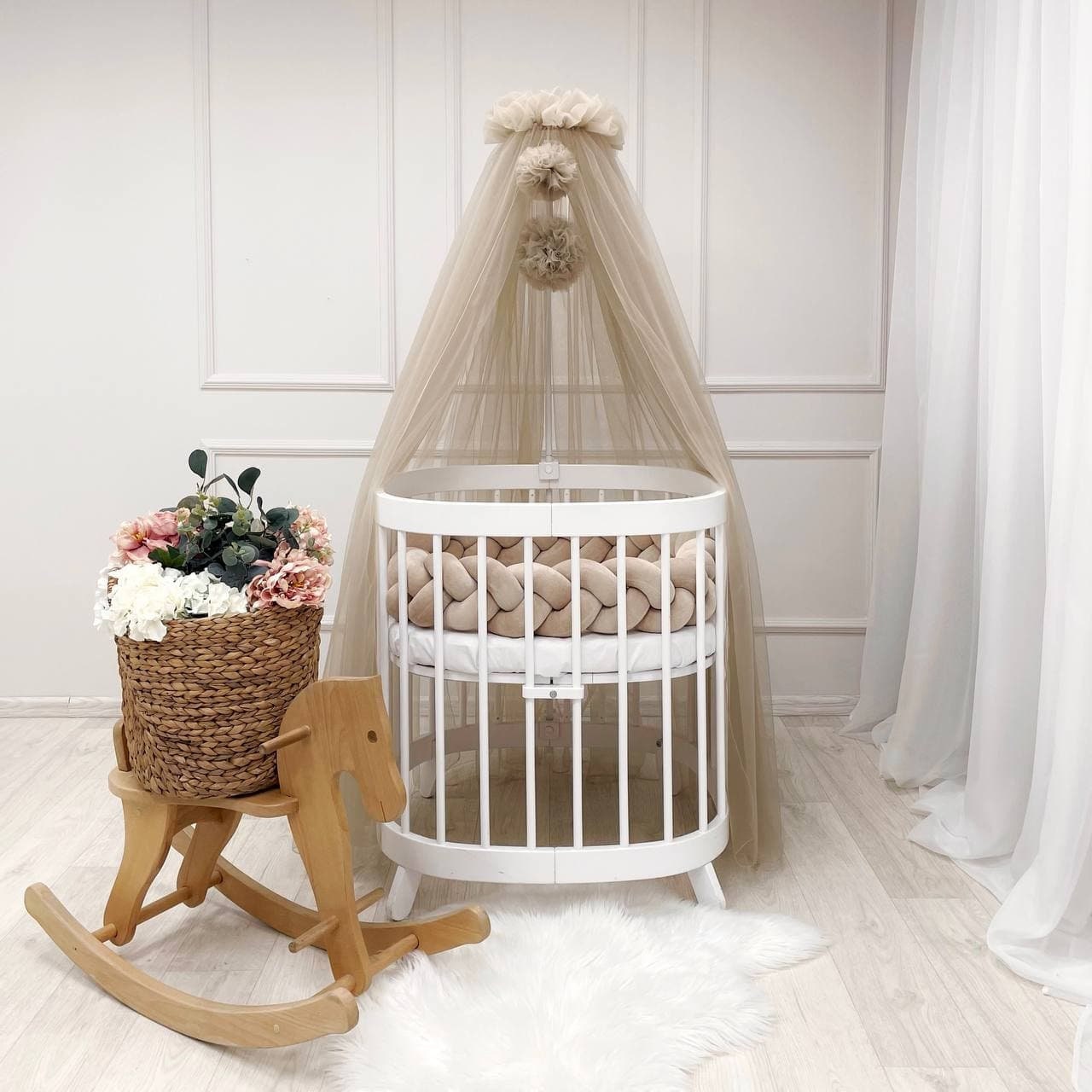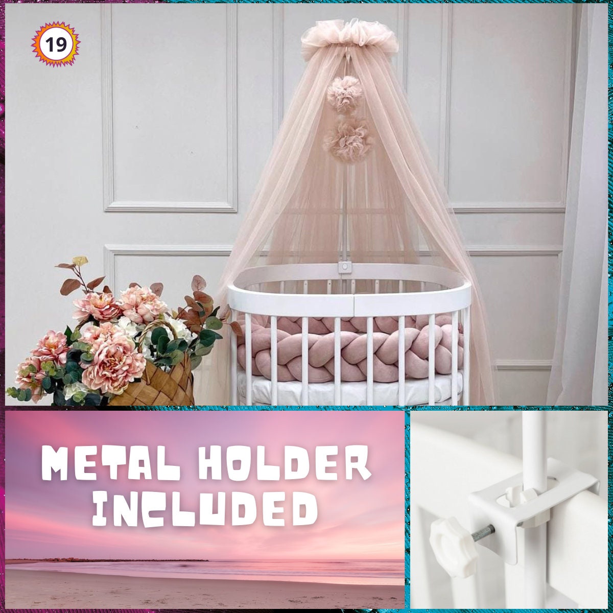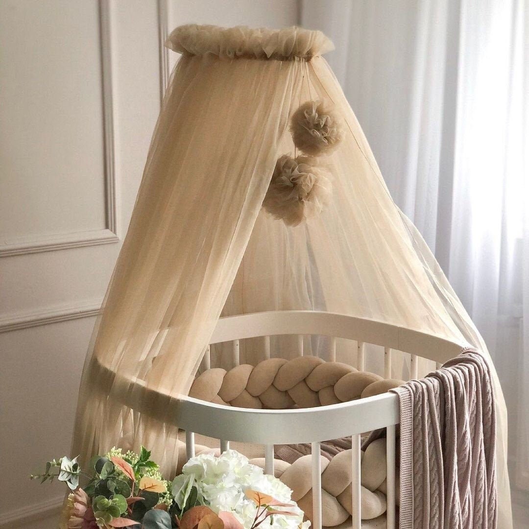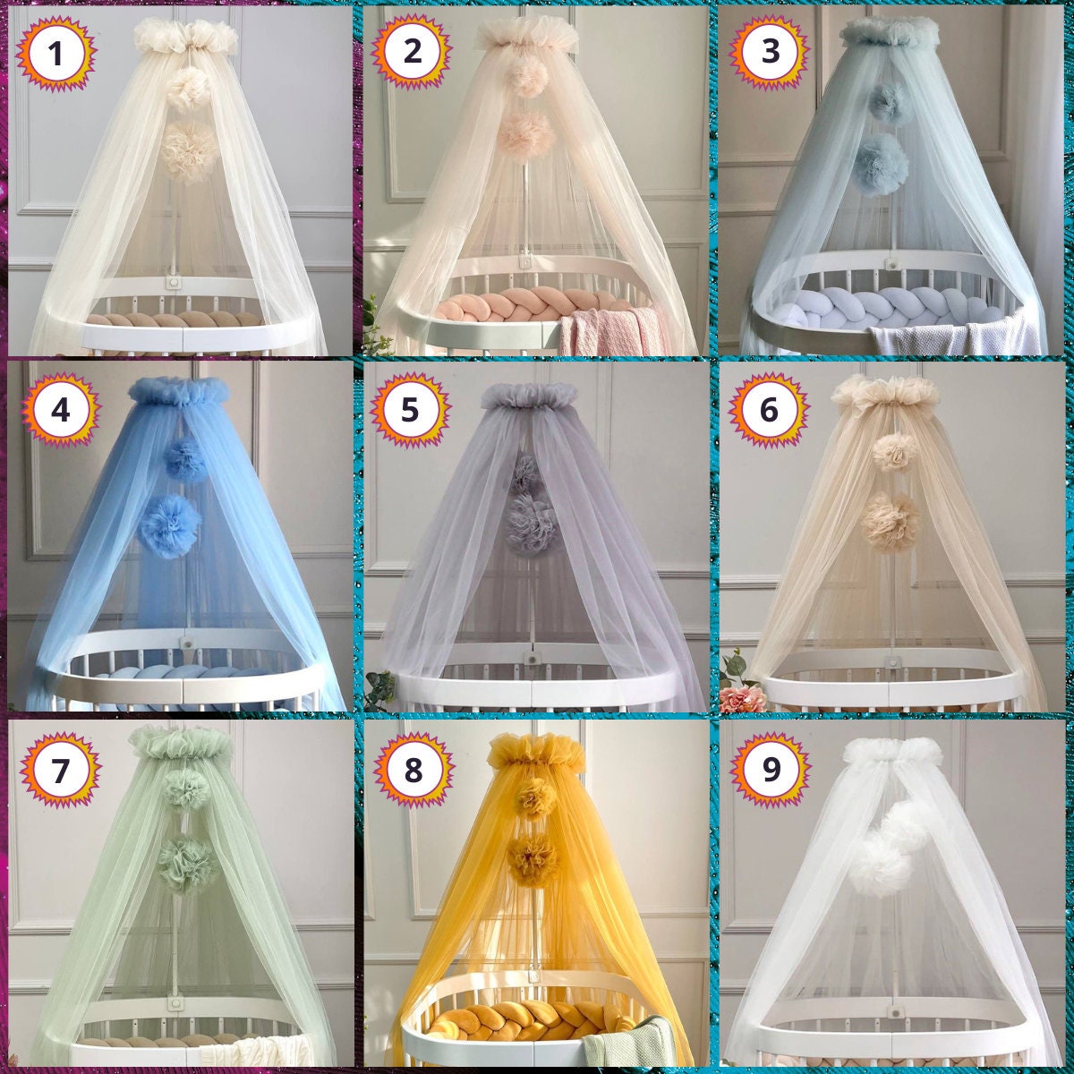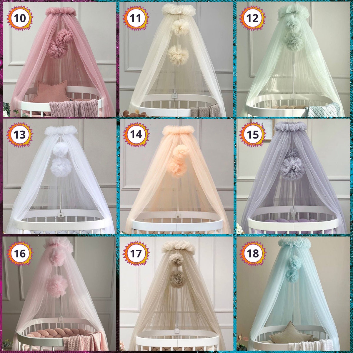 Crib Canopy with Pom Poms, Nursery Canopy, Bed Canopy, Play Canopy, Kids Canopy, Canopy Bed, Bed Baldachin, Tulle Canopy, Baby Baldachin