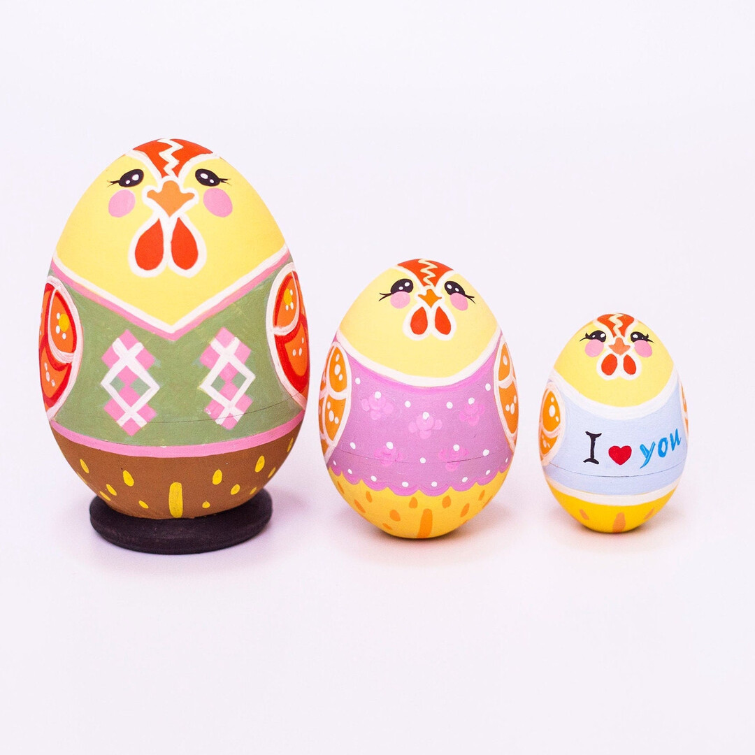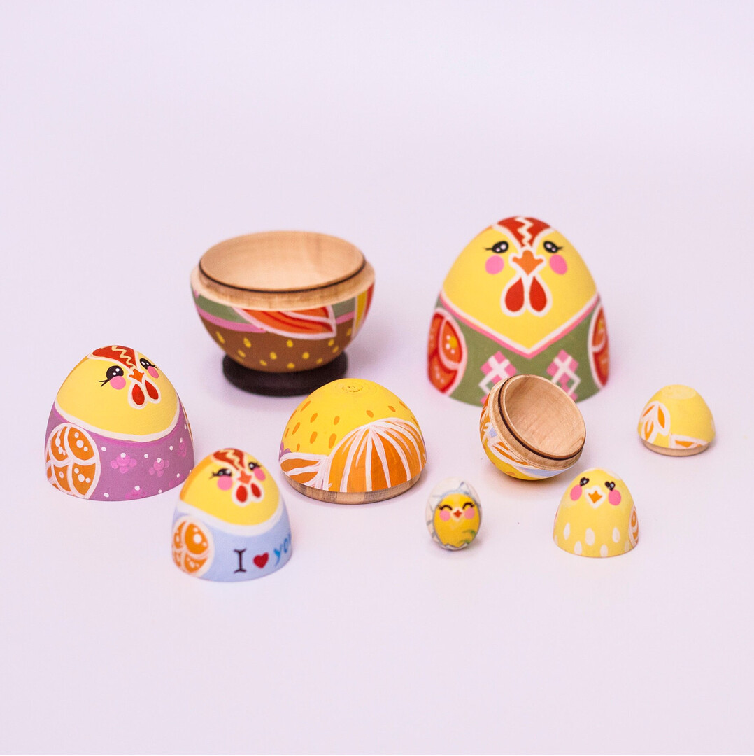 Nesting egg Matryoshka doll Chicken hand painted Matroshka Stacking dolls Personalized Wooden Babushka doll Baby girl Birthday gift toys