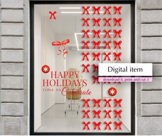 Classy Winter decal design with red bows and Lettering for Window, Showcase / Store front Decoration CDR PDF EPS Cut File/instant download This is the best way for decorate your window display of the store/caffee/restaurant/bar/other places. Our vector art is ready to cut by vinyl cutters/plotter machines! You are able to resize or change design at your desire. By changing the layout of the elements and their size, you can create YOUR OWN UNIQUE SHOWCASE DESIGN. This is INSTANT and DIGITAL DOWNLOAD. WE INCLUDE six file formats without watermarks: *.CDR - Corel Draw *.EPS - Adobe Illustrator  *.JPG - JPG preview *PDF - Adobe Acrobat Reader / Corel Draw / Adobe Illustrator ***Please be sure to have the correct software for opening and using these file types*** You "are" allowed to use this work for private use. Commercial use is prohibited: you can't sell it in difital form. ***Due to the fact that digital files cannot physically be returned or exchanged we do NOT offer Refunds or exchanges.*** If any problem will occur don't hesitate to contact me.
