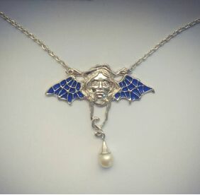 Gorgon jellyfish enamel . pendant ocean jewelry snakes medusa wings jewelry vintage jewelry handmade . witch jewelry Vintage Necklace . witchy woman