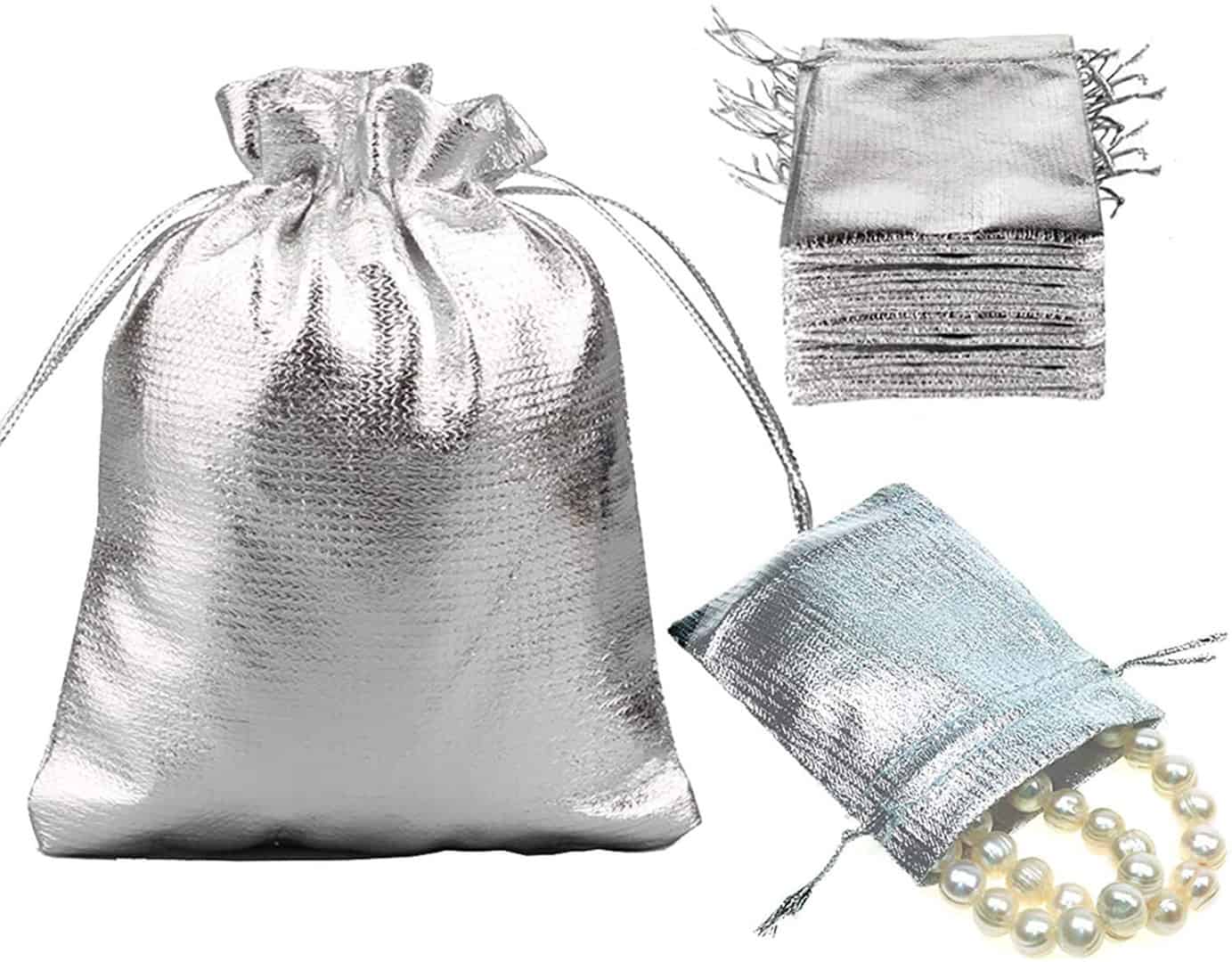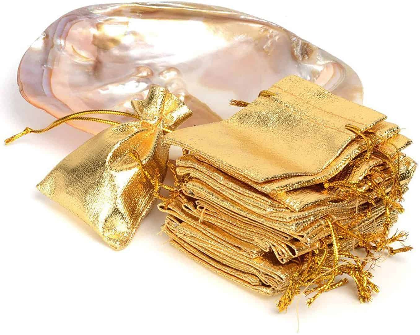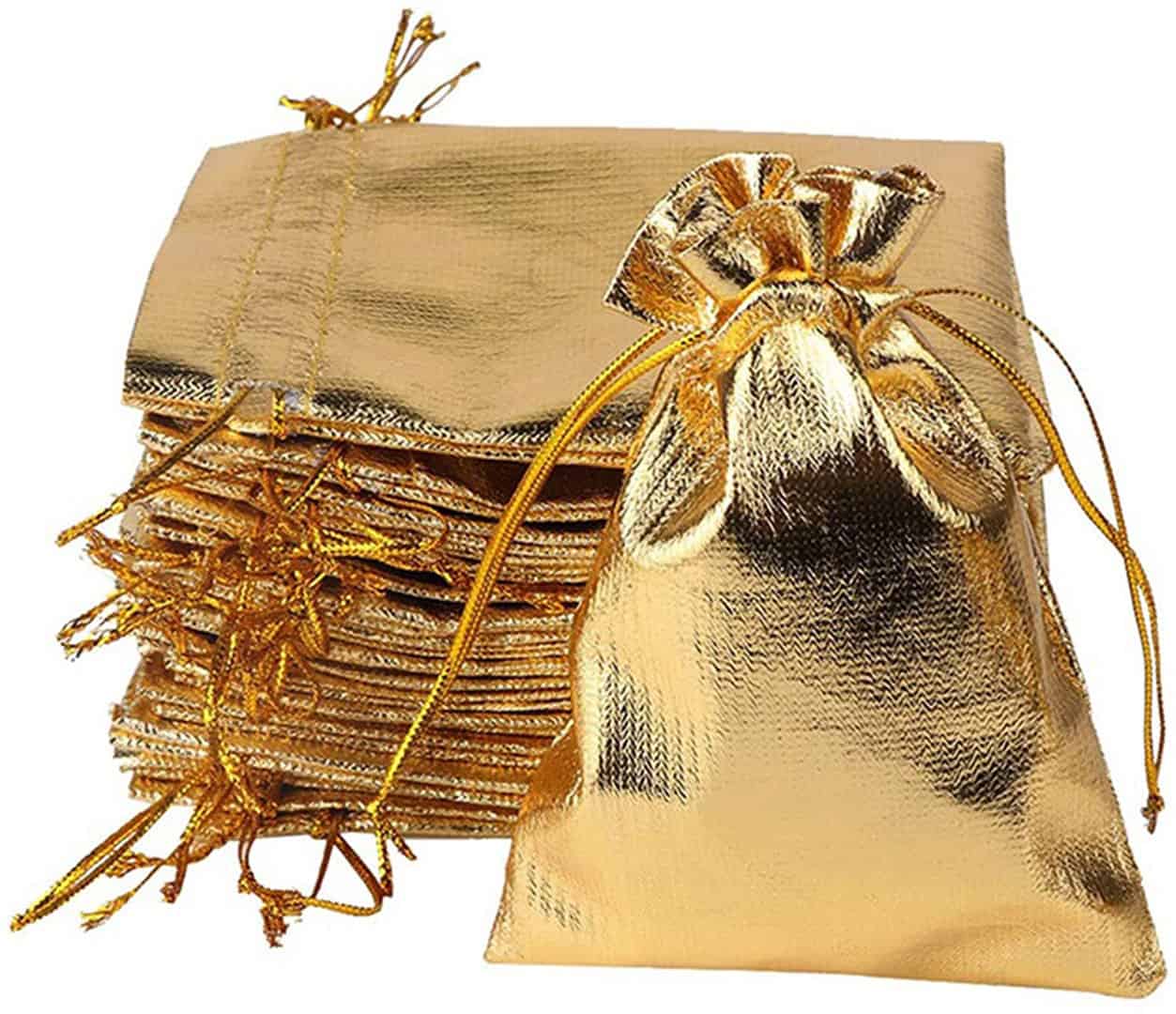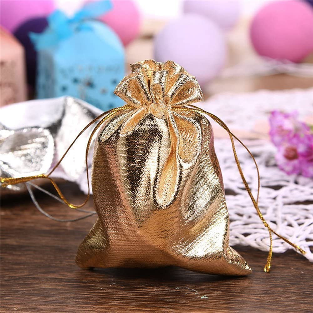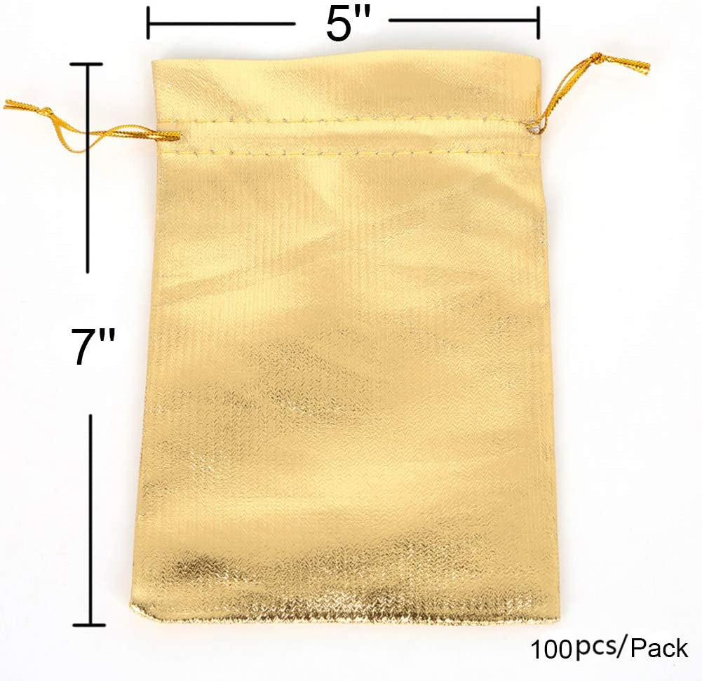 100 Pcs Gold Drawstring Organza Bags Party Wedding Favor Gift Jewelry Bags 5x7 Inch Drawstring Pouches