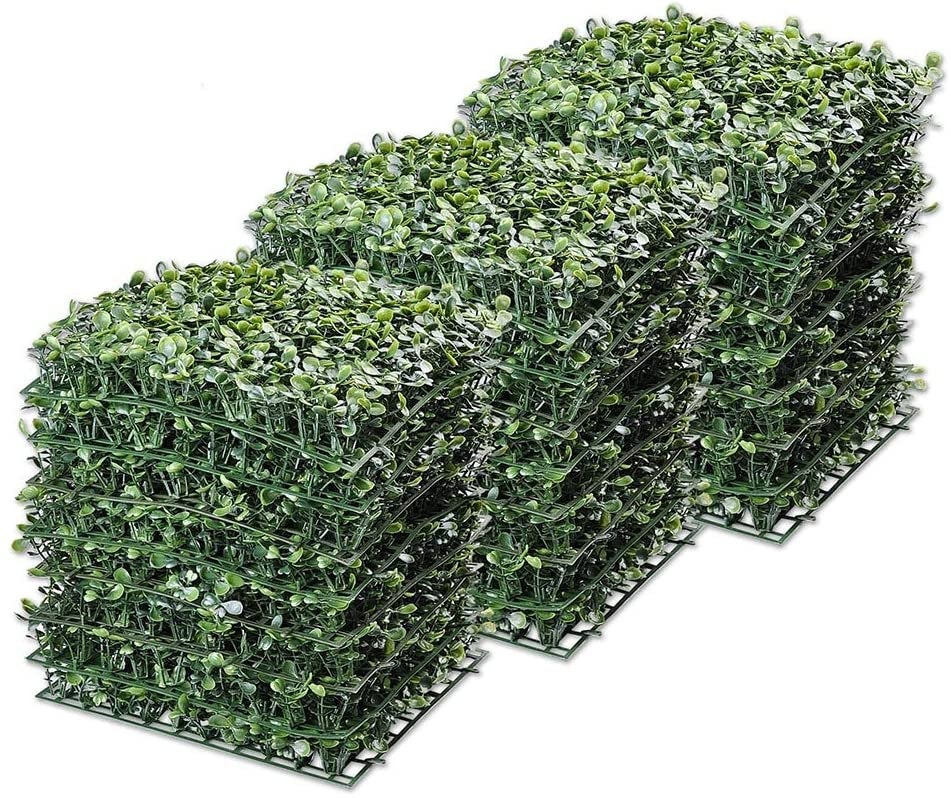 24-Pack 10"x10" Artificial Boxwood Hedge Mat with Cable Ties UV Privacy Fence Screen Greenery Panel Outdoor Decor