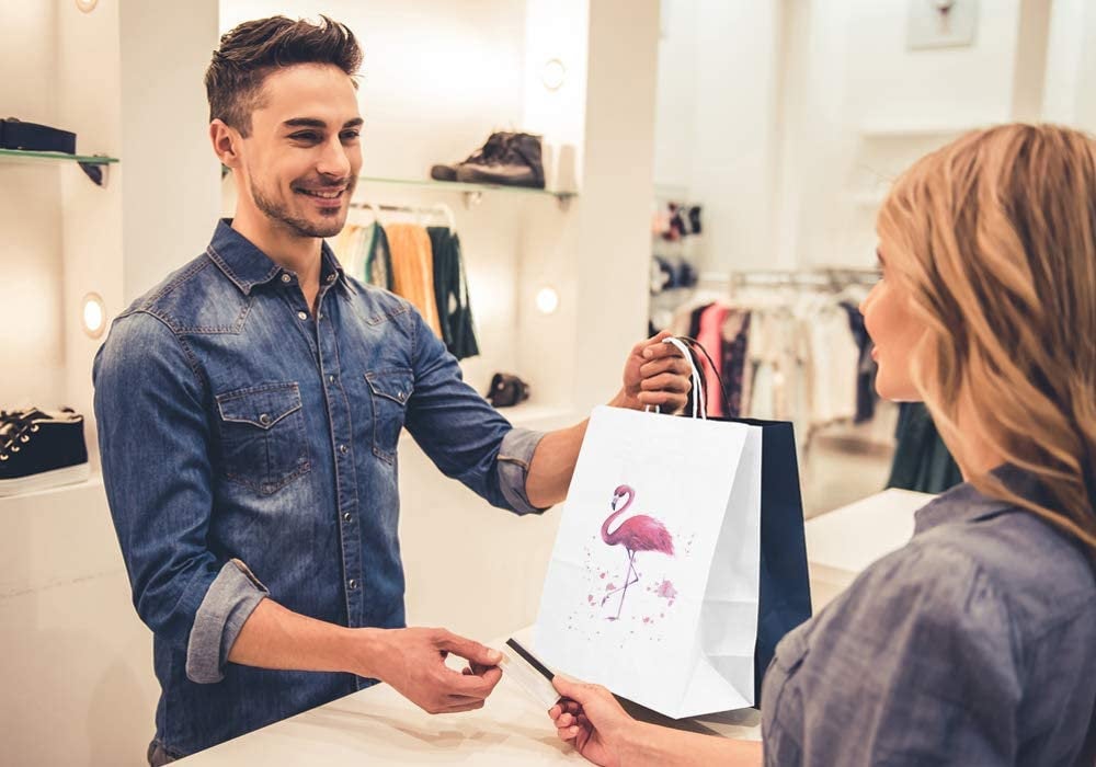 25Pcs Paper Gift Bags with Handles Flamingo Heavy Duty Paper Bags, Shopping Bags, Party Bags, Retail Bags, Merchandise Bags, Wedding Bags, C