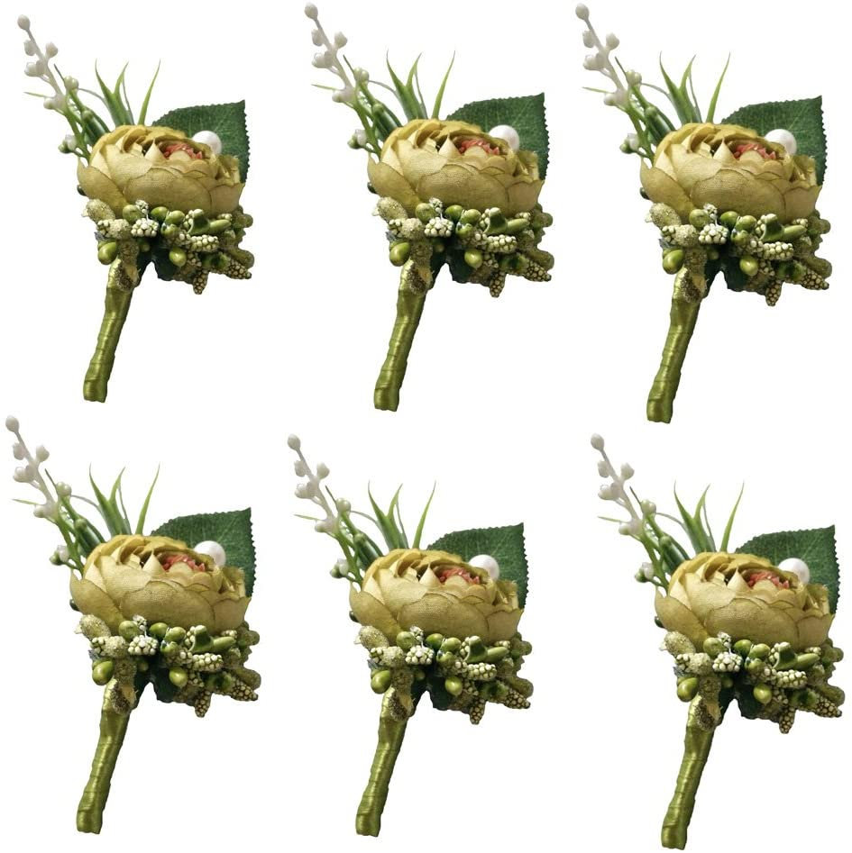 6 Pieces/lot Groom Boutonniere Man Buttonholes DIY Wedding Artificial False Flowers Party Decoration (Wine red)