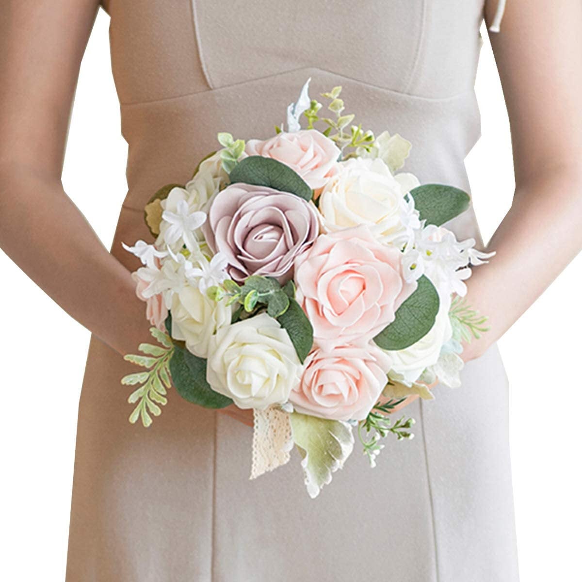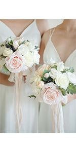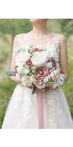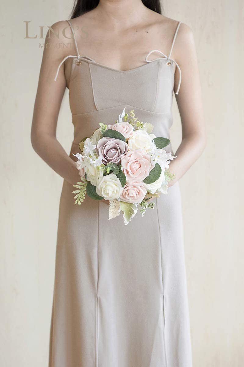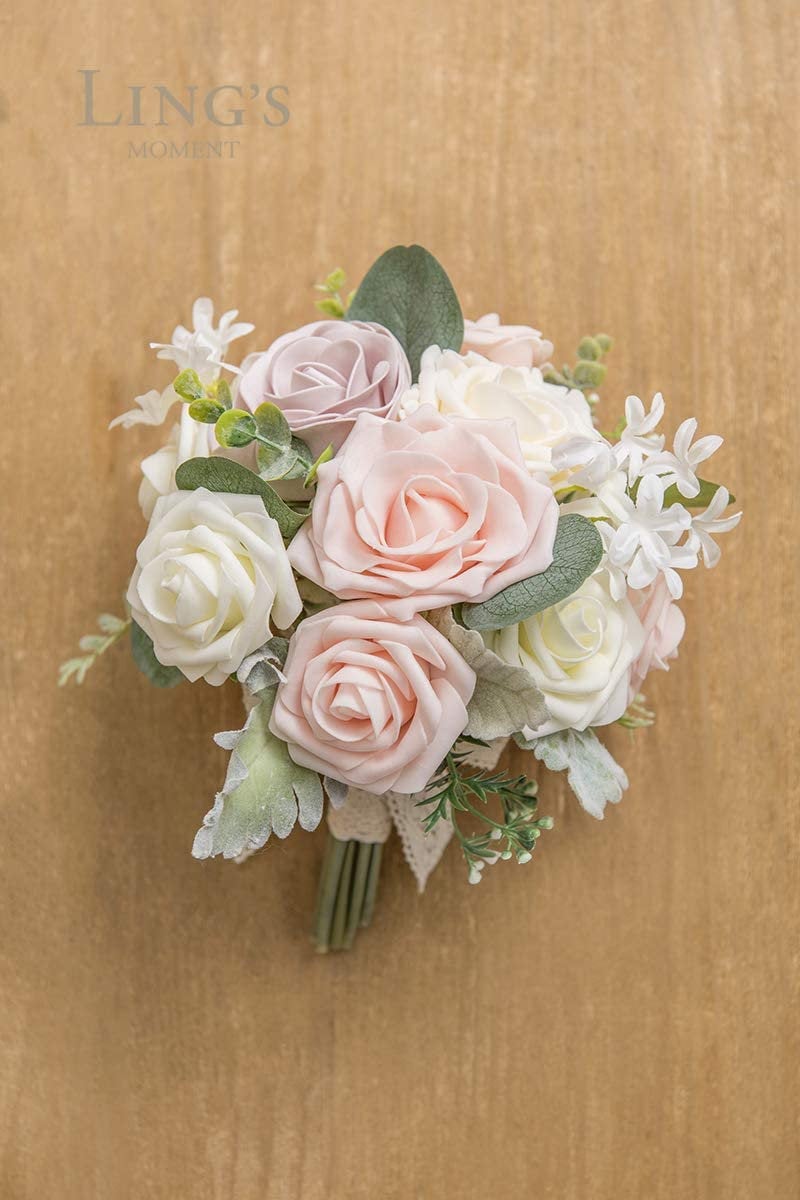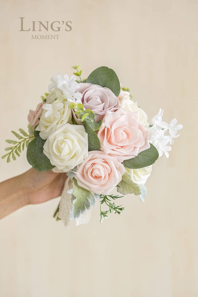 9 Inch Blush Artificial Flowers Wedding Bouquets for Bride - Tossing Bouquet - Bridal Bouquet for Wedding Ceremony Anniversary, Bridal Showe