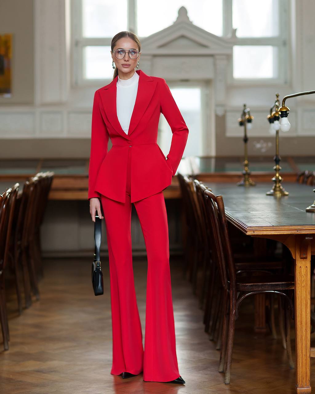 Red Women Suit, Red Peplum Blazer Suit with Flare Pants, Red Wedding Guest Suit, Red Prom Suit, Formal Business Wear