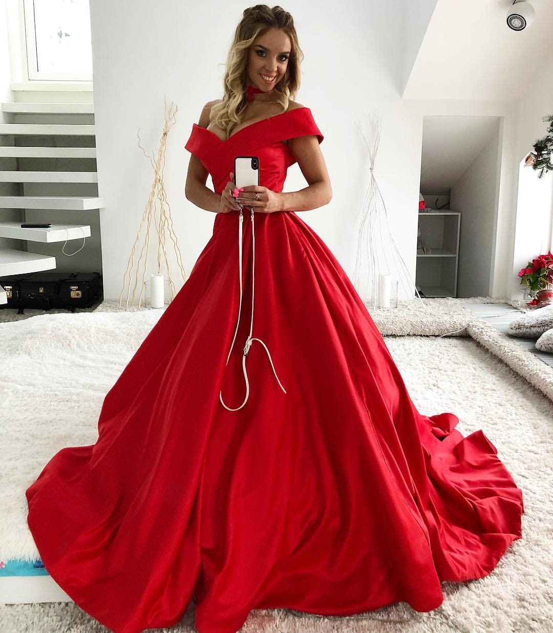 Gorgeous Satin Red Wedding Dress, Long Off Shoulder Evening Gown, Red Prom Dress, Bridesmaid Dress, Bridal Dress for Wedding Party