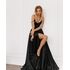 Luxury black Evening Dress, Satin Evening Gown, Elegant Black wedding party Dress, Evening dress with thin straps and a slit in the skirt