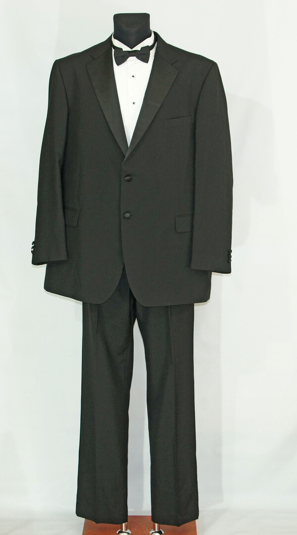 Men's black 2- pcs set tuxedo suit Porto Filo good for wedding, party,jacket+ pants,two buttons,Single Breasted Vintage Suit, marked size chest 48 Long (122 cm)