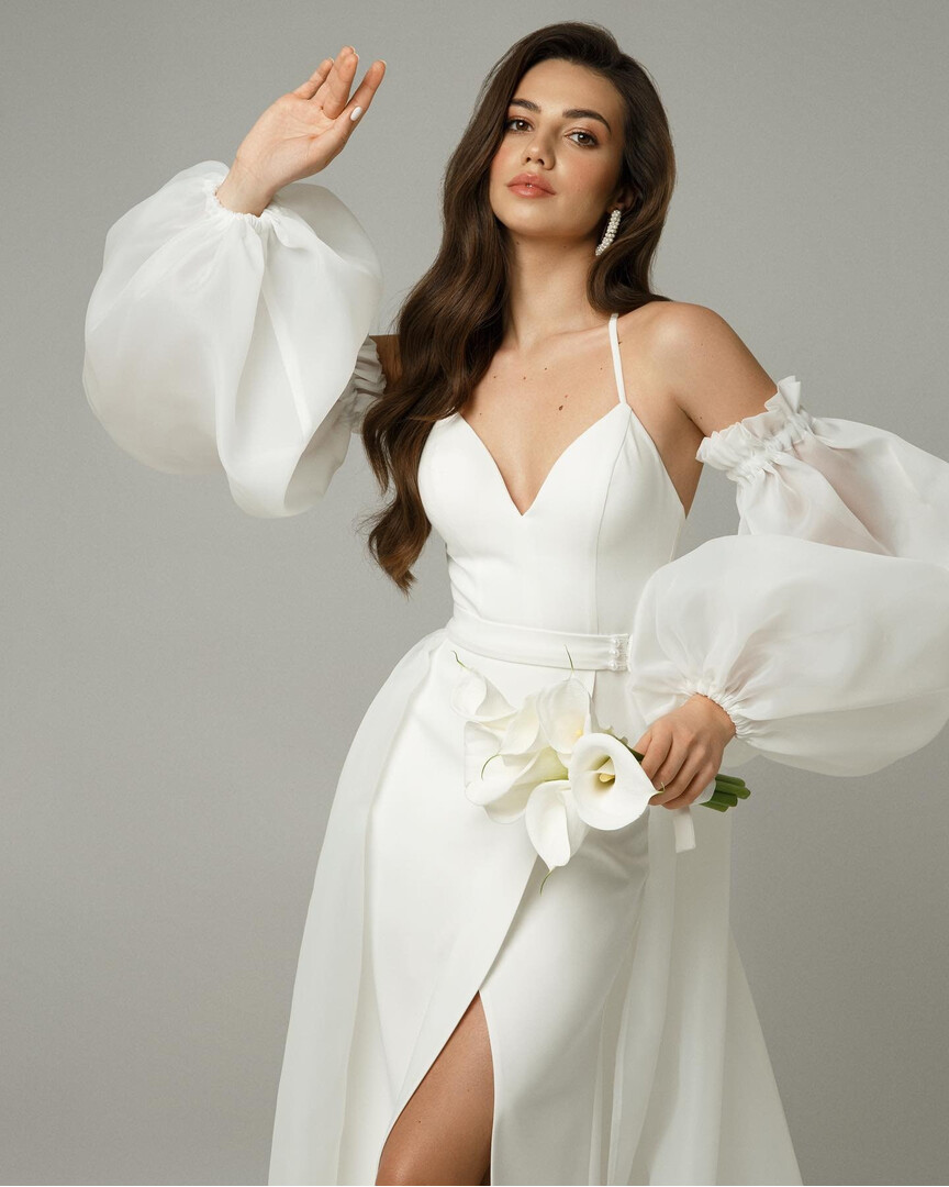 Mermaid Wedding Dress with Detachable Chiffon Sleeves and Train, Bride Dress, Wedding Ceremony & Party Dress, Minimal Bride Dress