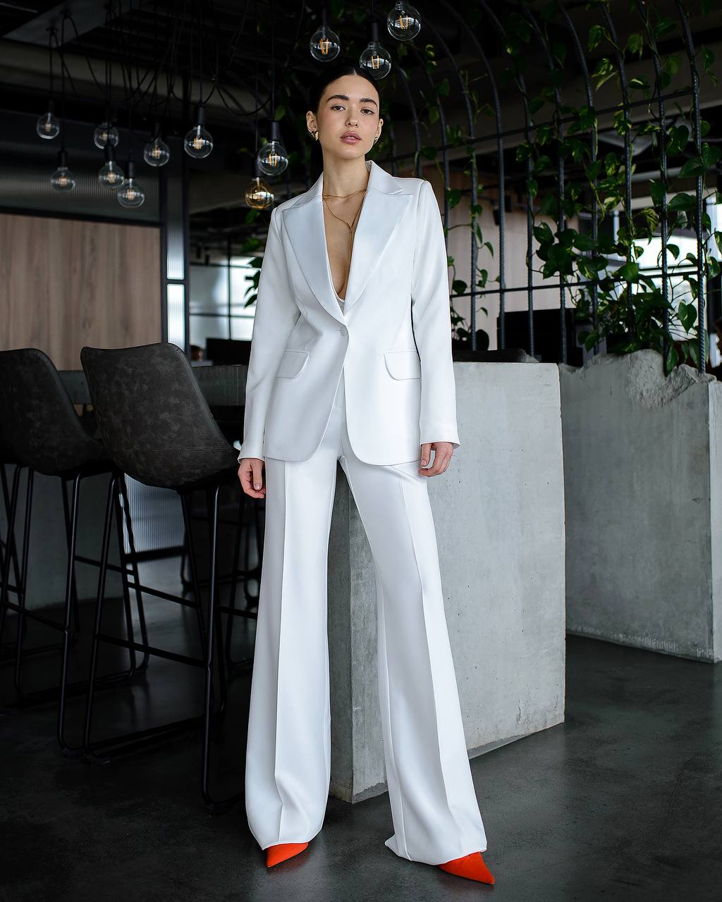 Wedding White Suit, White Three Piece Suit, Tuxedo White Wedding Suit - Lined Blazer with Satin Collar Buttoned Vest Straight Pants