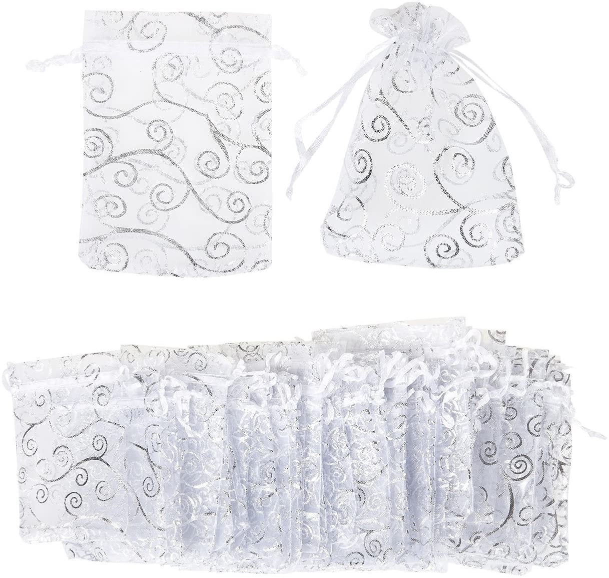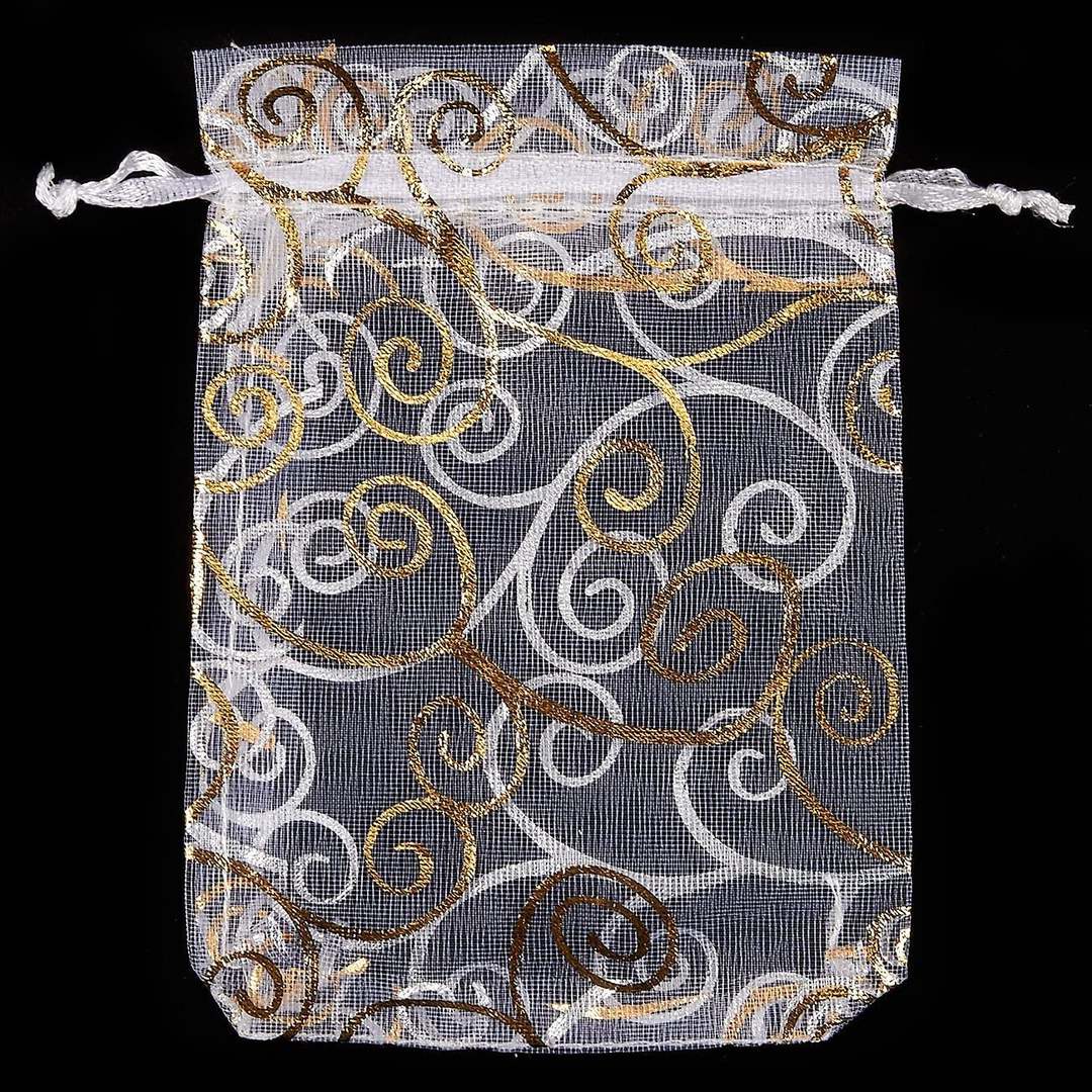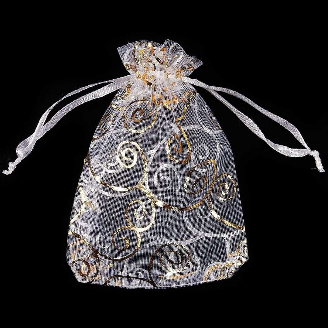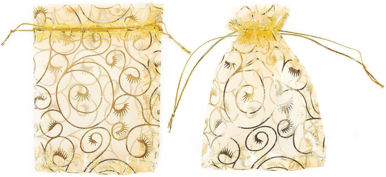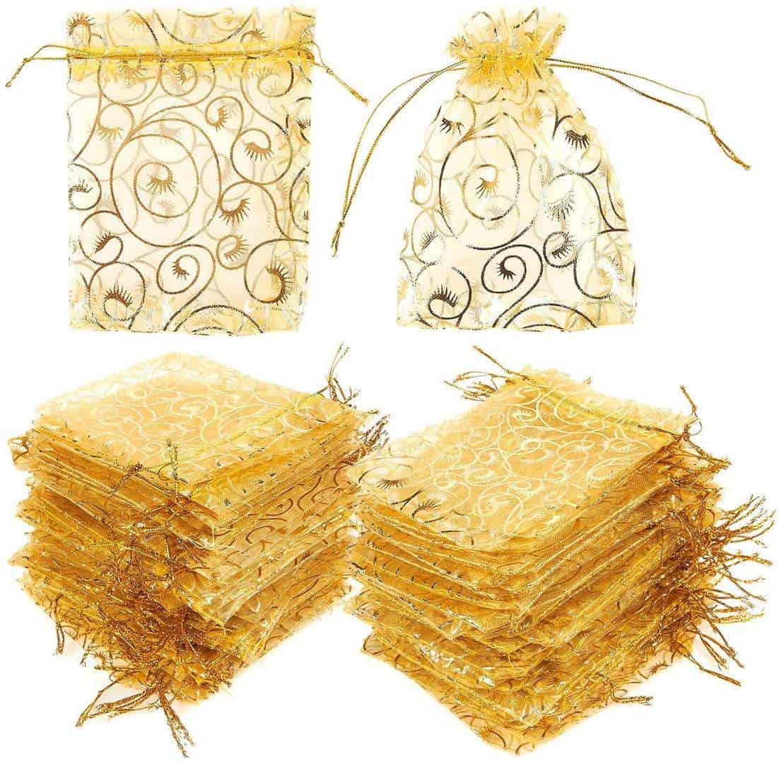 Organza Bags - 120-Count Satin Drawstring Organza Pouches with Gold Swirl Design, Mesh Favor Bags for Baby Showers, Wedding Gifts, Special O