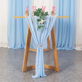 ● MATERIAL: 100% Polyester. Includes 1 piece of chiffon runner & 2 silk ribbon ties. You can tie on each ends if needed.● EXTRA LONG:Approx. 27" W x 168" L. Long enough to decorate banquet tables, birthday cake tables, dessert tables, wedding reception tables, candy buffet tables and dining tables.● SOFT & DURABLE:Soft, durable and unique semi-sheer chiffon. Chiffon wedding table runner will make your big day more special.● ELEGANT:Light Blue chiffon table runner gives you soft feeling. Can change the look of your table right away. Semi sheer chiffon table cloth will wow your guests.● MULTI-USE:Sky Blue chiffon table cloth is great for wedding party, birthday party, Halloween, Thanksgiving, Christmas, New Year, Valentine's Day, bridal & baby shower, special events or daily use.