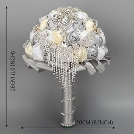 ● Material: Rhinestone brooch, Crystal, Rhinestone tassel, Satin roses, Satin ribbon● Bouquet Height: approx 10.0" Bouquet size : approx diameter 8.0" (including the ribbon part)● Color: Ivory, Rose Red, Green, Purple, Red, Blue, Champagne, Silver 8 colors available● Occasions: Wedding ceremony. Bride or bridesmaids hand hold flowers. Home decoration● This gorgeous handmade diamond crystal bling bridal brooch bouquet will definitely make your day on wedding!