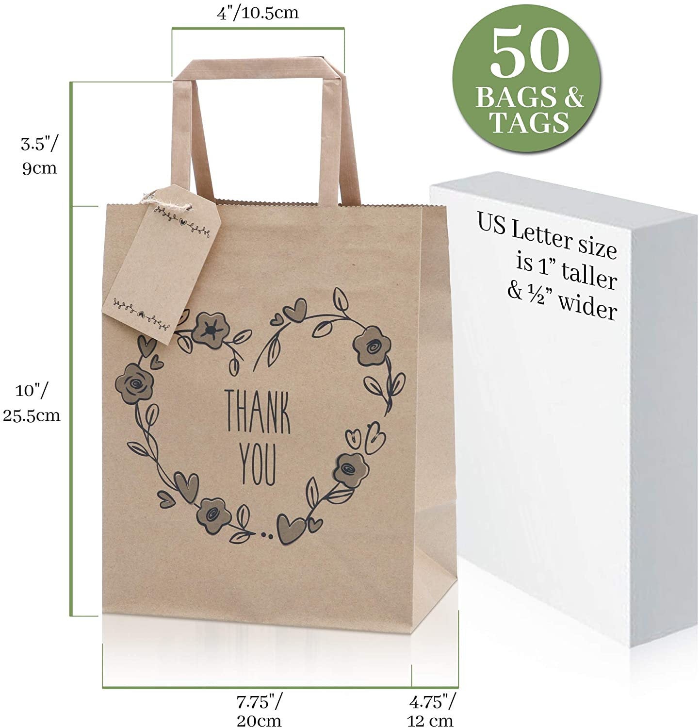 Thank You Gift Bags Bulk with Handles for Gift Giving, Wedding Favors or Business Needs, Great for Appreciation Gifts, Retail and Baby Showe