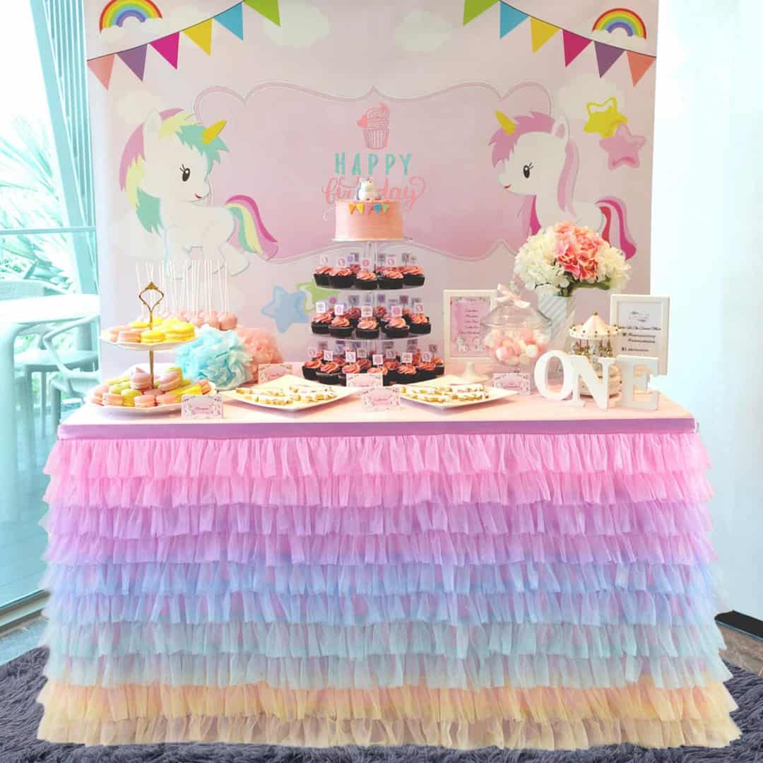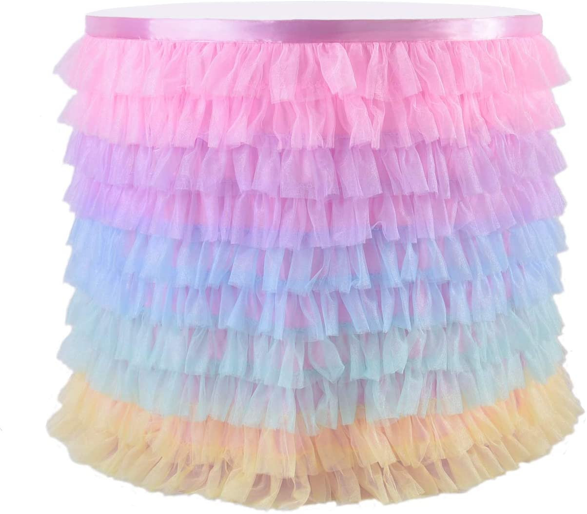 Tulle Table Skirt Tableware Table Cloth,Tutu Table Skirting for Party,Wedding,Birthday Party Home Decoration,High-end Gold Brim 3 Layer Mesh