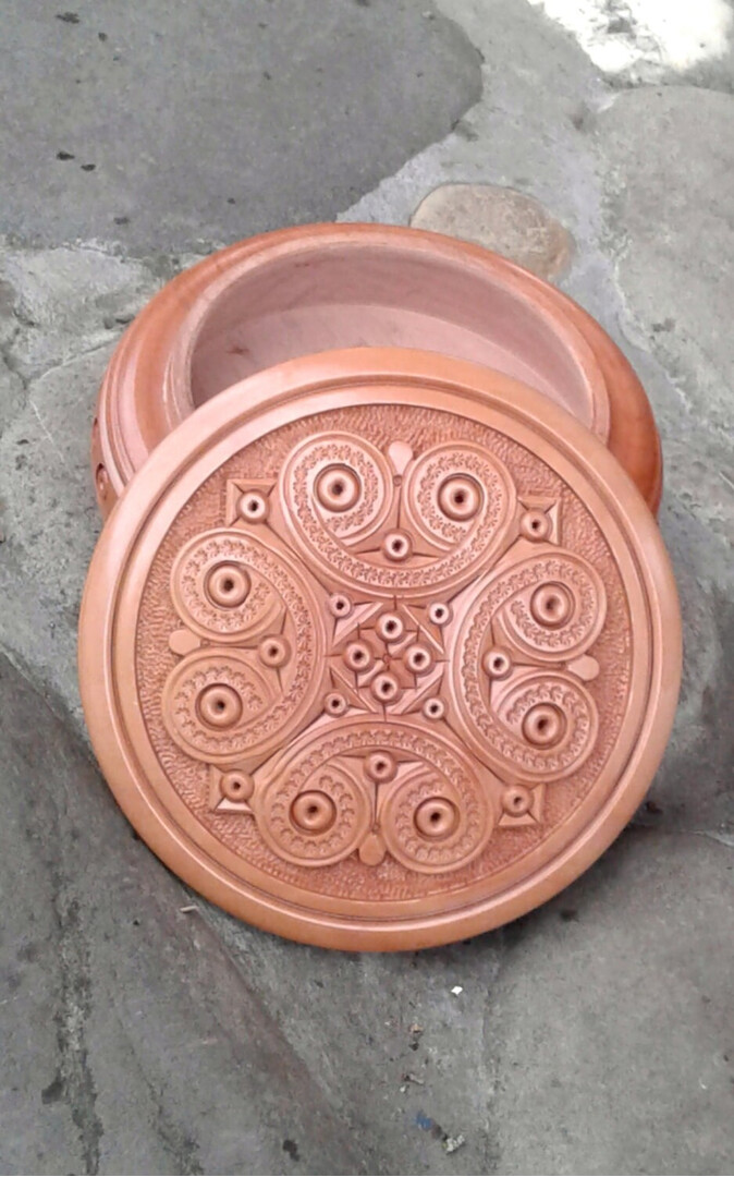 1pc. Jewelry box Round carved wooden box Wood Carved Box Necklace Jewelry Gift Box Wedding gifts souvenir Wood-pear 5"