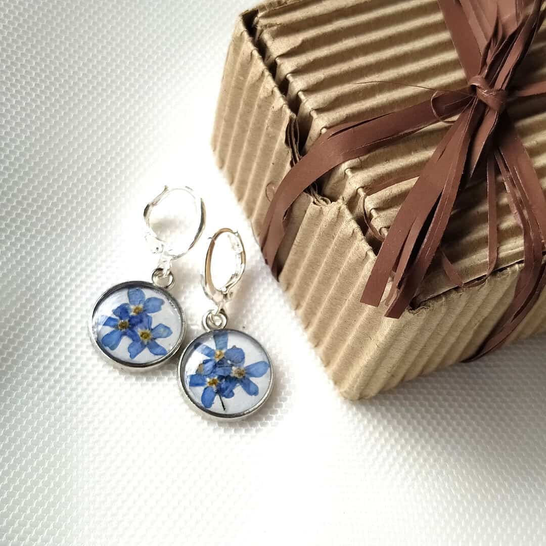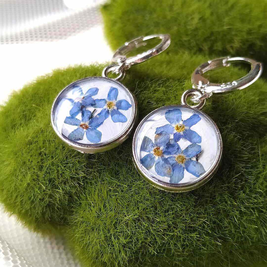 Forget me not earrings college student gift Pressed flower earrings dangle Graduation Gift